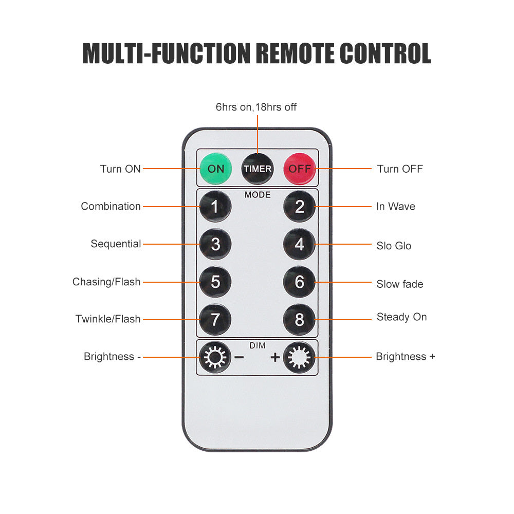 6. Eight modes: combination; wave; sequence; slow light; chase; fade in; flash; stable