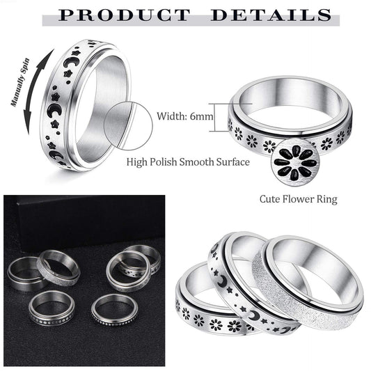 • Stainless Steel Rotatable Spinner Ring Moon Stars Relieve Anxiety Rings