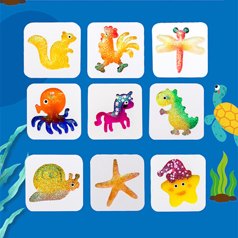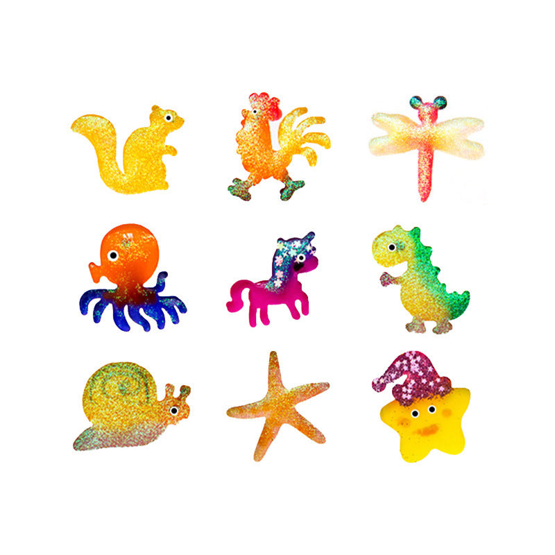 100ml sodium alginate solution * 8 (color random) plastic mold * 6 instruction manual * 1Measuring cup * 1 net fishing * 1 elf companion * 2 storage box * 1 glove * 1 glitter powder * 4 seaweed * 1,Syringe * 1 drift bottle * 1